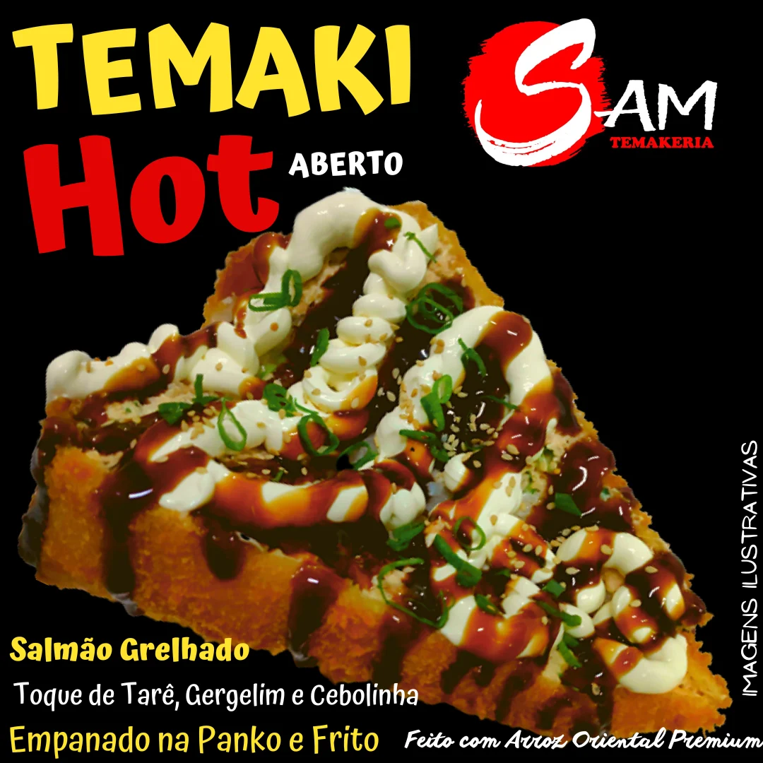 2 Temaki Hot (empanado na Panko e Frito) feitos c/ salmão grelhado , Arroz Oriental Premium , Cream Cheese , Cebolinha , Toque Tarê + 10 Peças Uramaki Salmão Grelhado + 20 Peças Hot Roll Salmão Acompanha 3 Saches Tarê + 3 Sache Shoyu + 2 Hashis