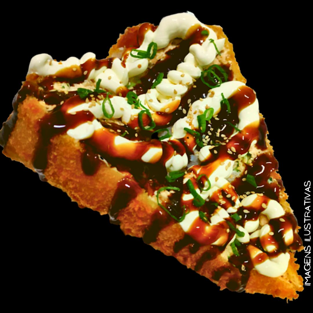 Empanado na Panko e Frito e aberto , Feito com Salmão Cru em Cubos, Cream Cheese, Toque Tarê , Cebolinha e Gergelim - Arroz Oriental temperado ao Molho Sú Acompanha 1 sache Tarê (Caso queira Trocar por Shoyu colocar na Obs:)
