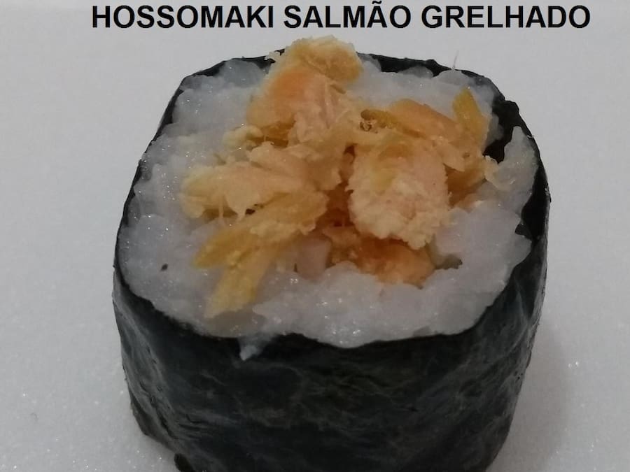 04 Unid Hossomaki Salmão Grelhado Com Cream Cheese, Arroz oriental Acompanha 1 Sache Shouy + 1 Hashi