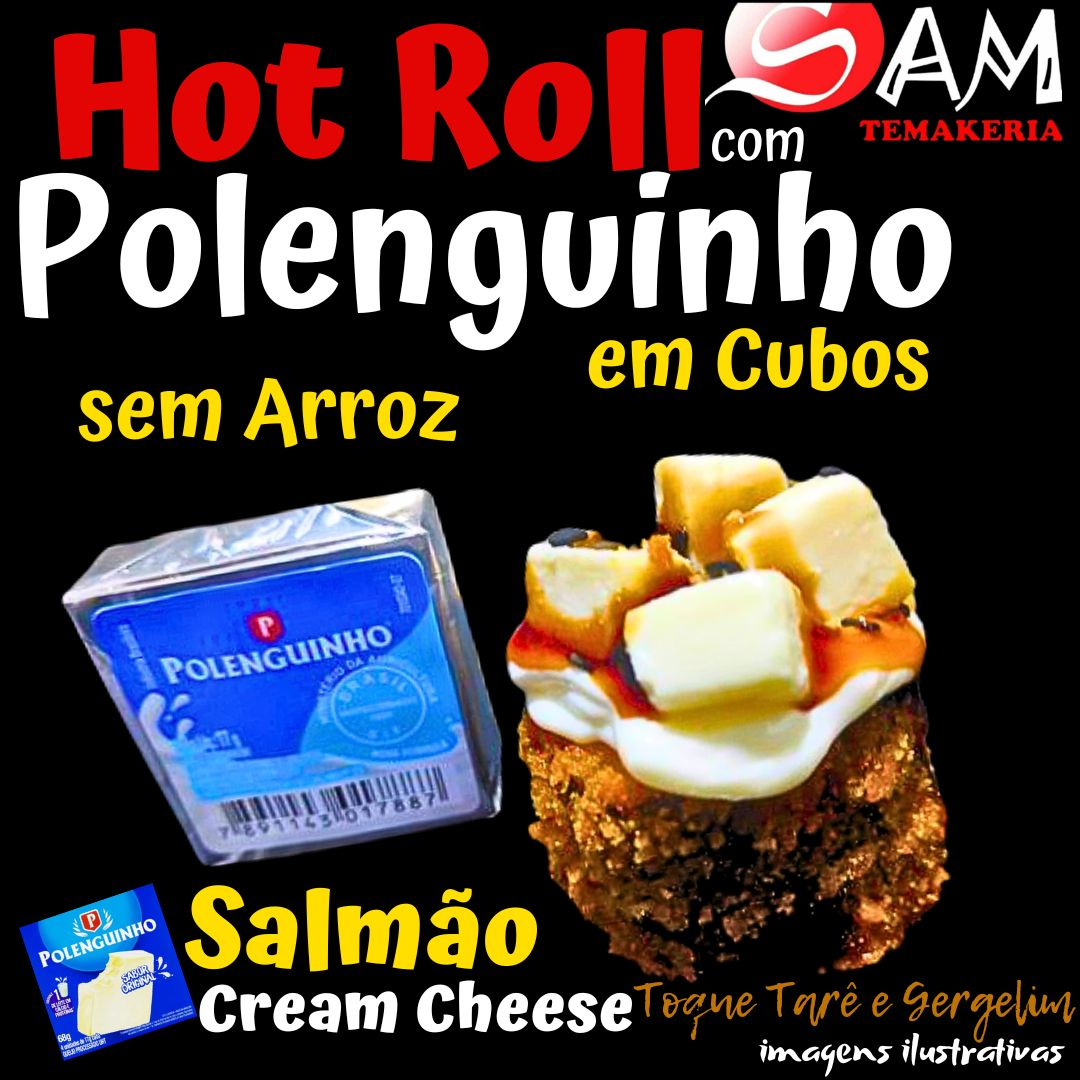 4 Peças Hot Roll sem ARROZ > Recheio e Cobertura Salmão Grelhado Cubos de Polenguinho, Toque de Tarê e Gergelim, Acompanha 1 Sache Tarê
