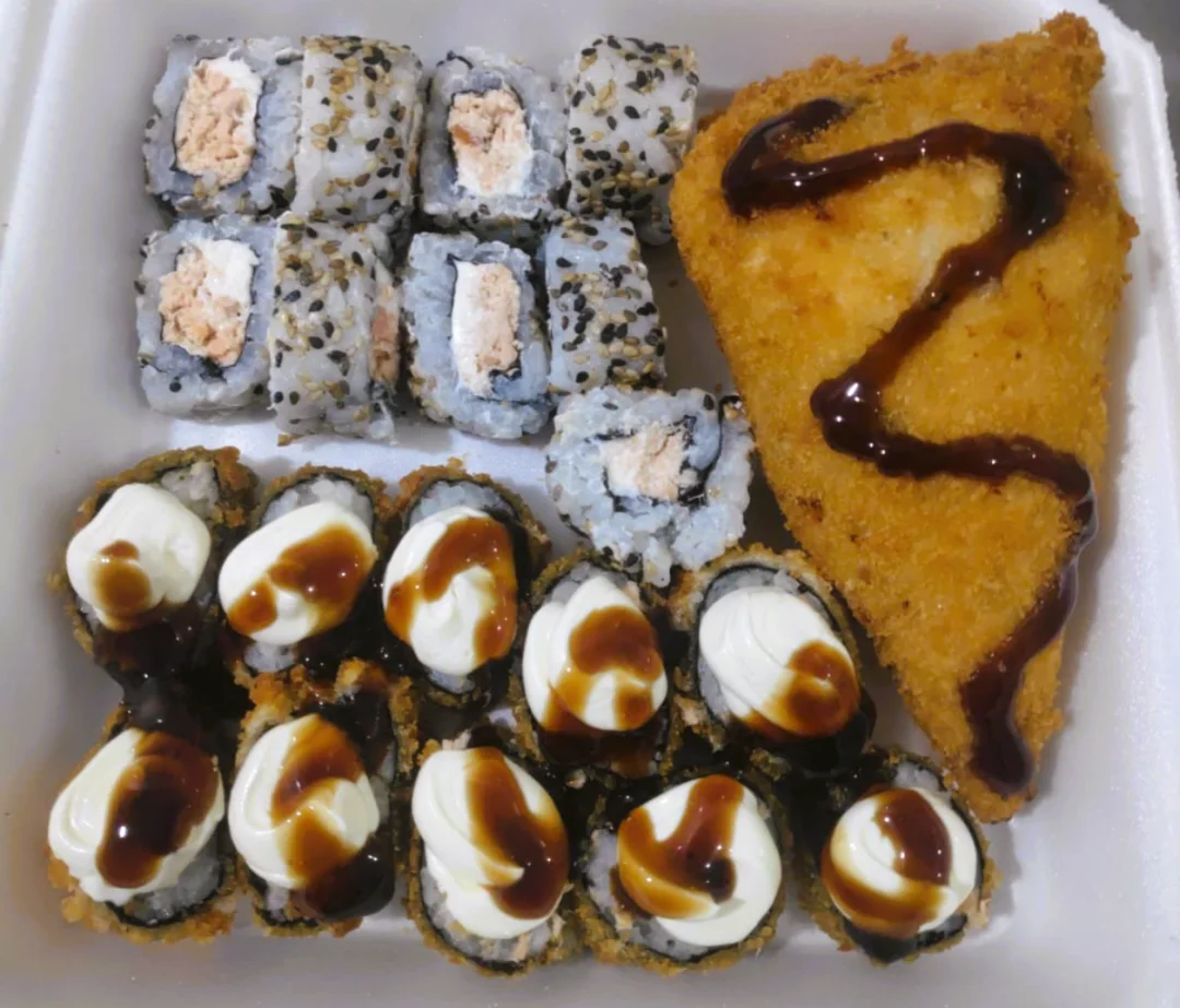 1 unid Temaki Hot (tam normal) Salmão Grelhado + 3 Peças Joy Salmão Cru + 5 Peças Niguiri Salmão Cru + 4 Peças Uramaki Salmão Grelhado + 8 Peças Hot Roll Salmão + 2 Peças Baterá Salmão Cru ... Produtos Feitos com Arroz Oriental Premium !!!