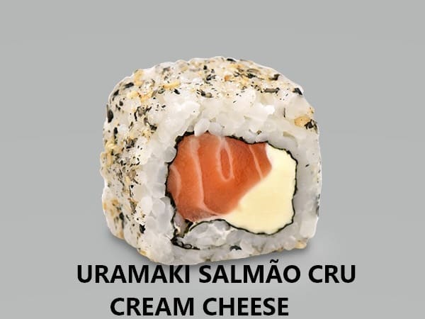 04 Peças Uramaki salmão Cru com Cream Cheese, Arroz Oriental Premium e Gergelim Acompanha 1 Sache Shoyu + 1 Hashi